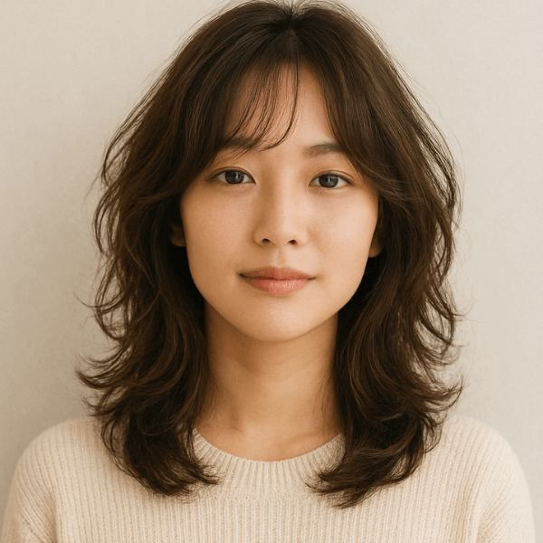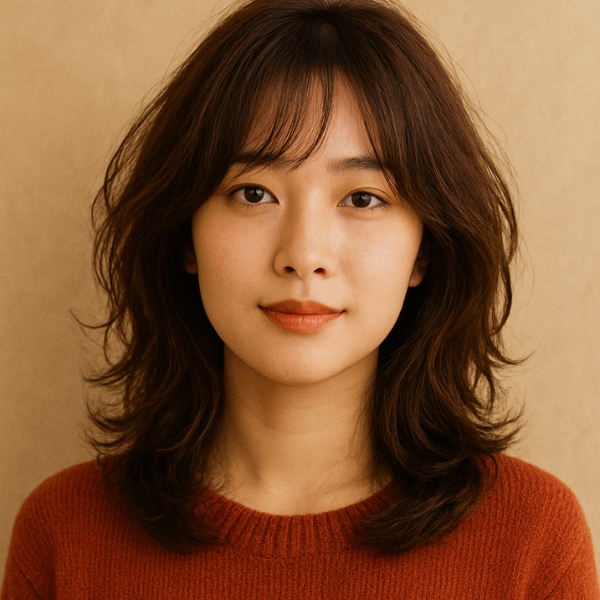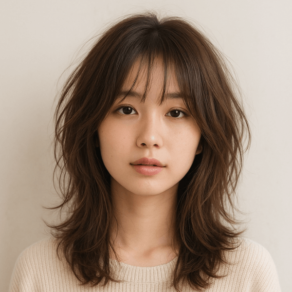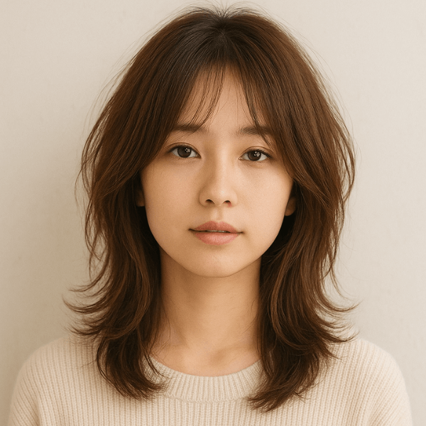 夏の軽さを残しつつも、秋らしい深みを出すならレイヤーカットがぴったり。トップや顔まわりに段差を入れることで、動きとボリューム感が出やすくなり、マフラーやハイネックとも相性抜群です。