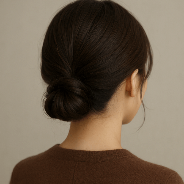 首元でざっくりまとめるシニヨンは、秋の落ち着いた雰囲気にぴったり。ざっくり感を残すことで抜け感が生まれ、ニットやワンピースにも相性抜群です。