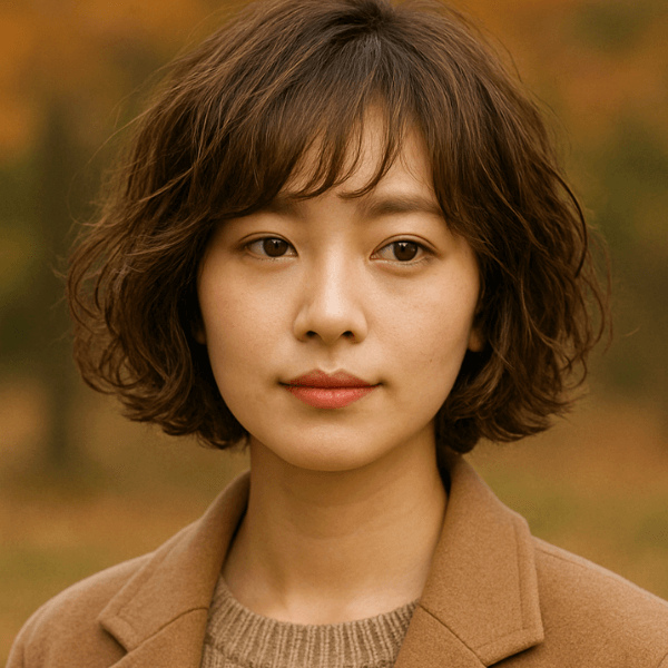 ショートボブにニュアンスパーマをかけると、シンプルなスタイルに柔らかな動きが生まれ、一気におしゃれ感がアップします。毛先に軽く揺れるようなカールを加えるだけで、抜け感があり大人っぽい印象に。朝のスタイリングも楽になり、忙しい日でも自然に決まります。秋の落ち着いたカラーと合わせれば、季節感を取り入れたトレンドヘアに。カジュアルにもフェミニンにも合わせやすい万能スタイルです。