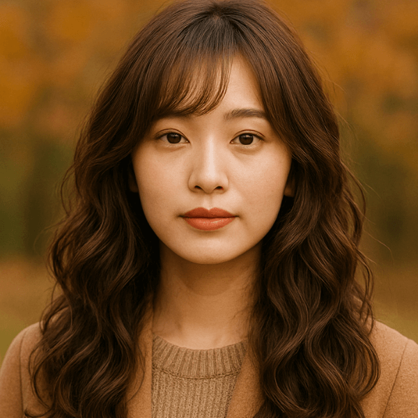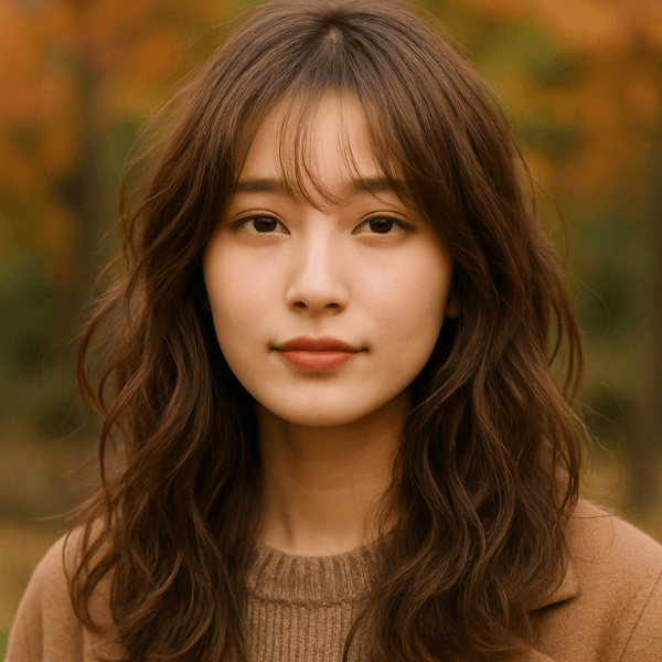 ロングヘアに大きめカールを加えると、上品で華やかな印象を演出できます。ゆったりとしたカールが動くたびに表情を変え、秋らしい落ち着きと女性らしさを引き立ててくれるのが魅力。毛先にボリュームが出るので小顔効果も期待でき、ドレスアップから日常のおしゃれまで幅広く対応可能です。深みのあるブラウンやベージュ系のカラーと合わせると、秋ファッションにぴったりの大人スタイルに仕上がります。