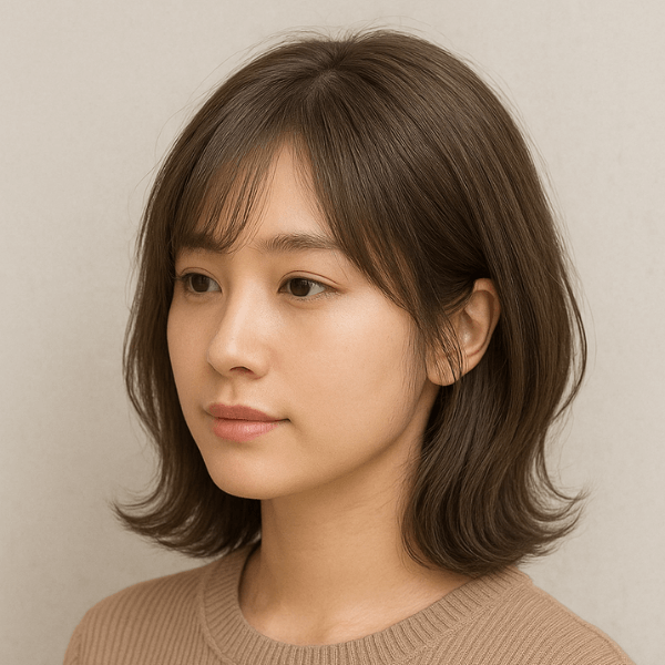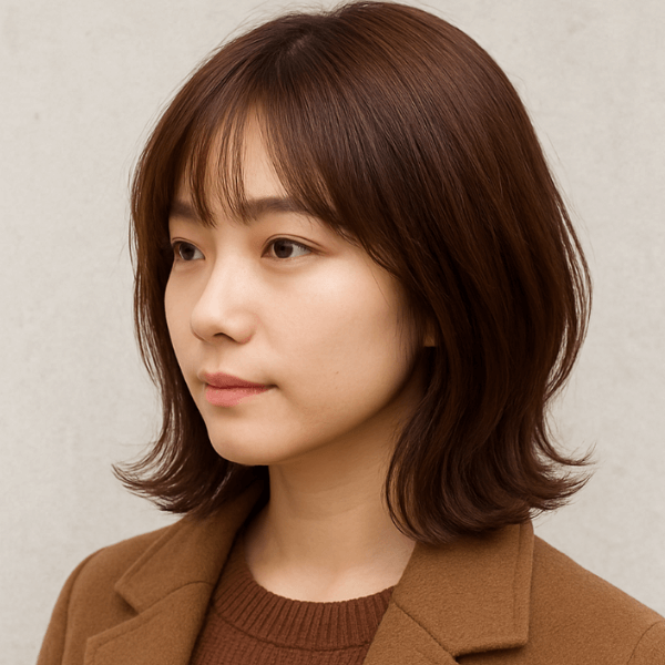 くすみ感のあるアッシュブラウンは、落ち着きと透明感を両立。グレー系のコートやシンプルなモードファッションと相性抜群で、洗練された雰囲気を楽しめます。